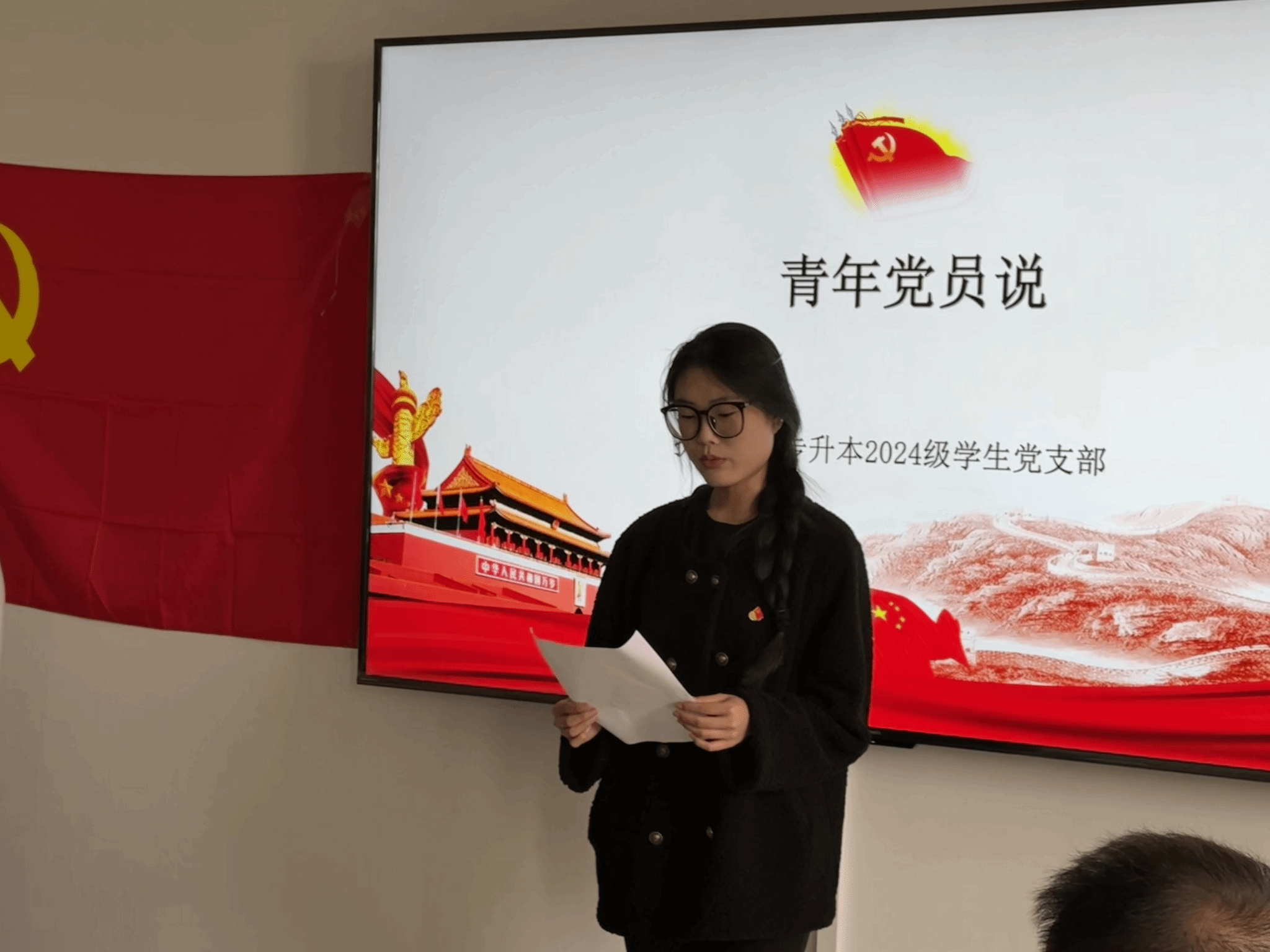 专升本2024级学生党支部B502成功举办“青年党员说”主题活动。支部全体党员共65人参会,三名青年党员代表分别围绕工作、生活和学习三个方面分享心得体会,支部书记于洋同志作总结发言。