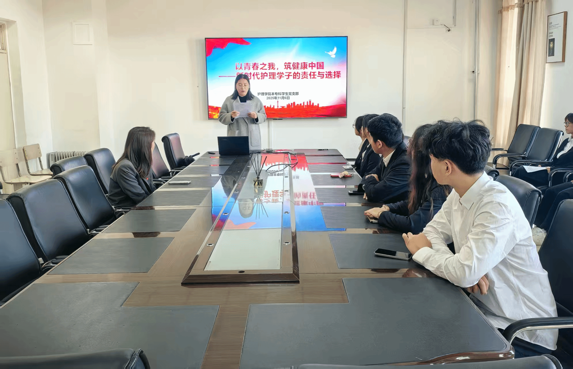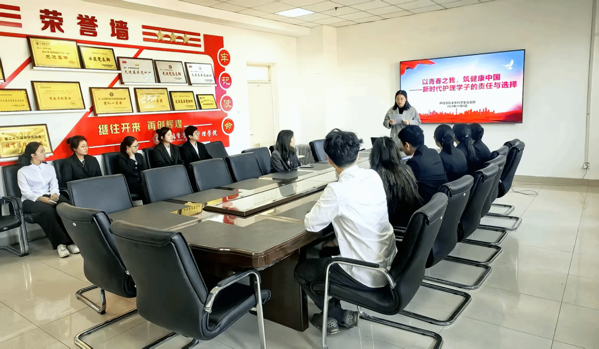本专科学生党支部成功举办“以青春之我,筑健康中国”主题党课暨考研深造动员交流会。为深入学习贯彻党和国家关于卫生健康事业的战略部署,引导护理学子深刻认识时代使命,明确职业发展方向,激发投身“健康中国”建设的责任感和内生动力。