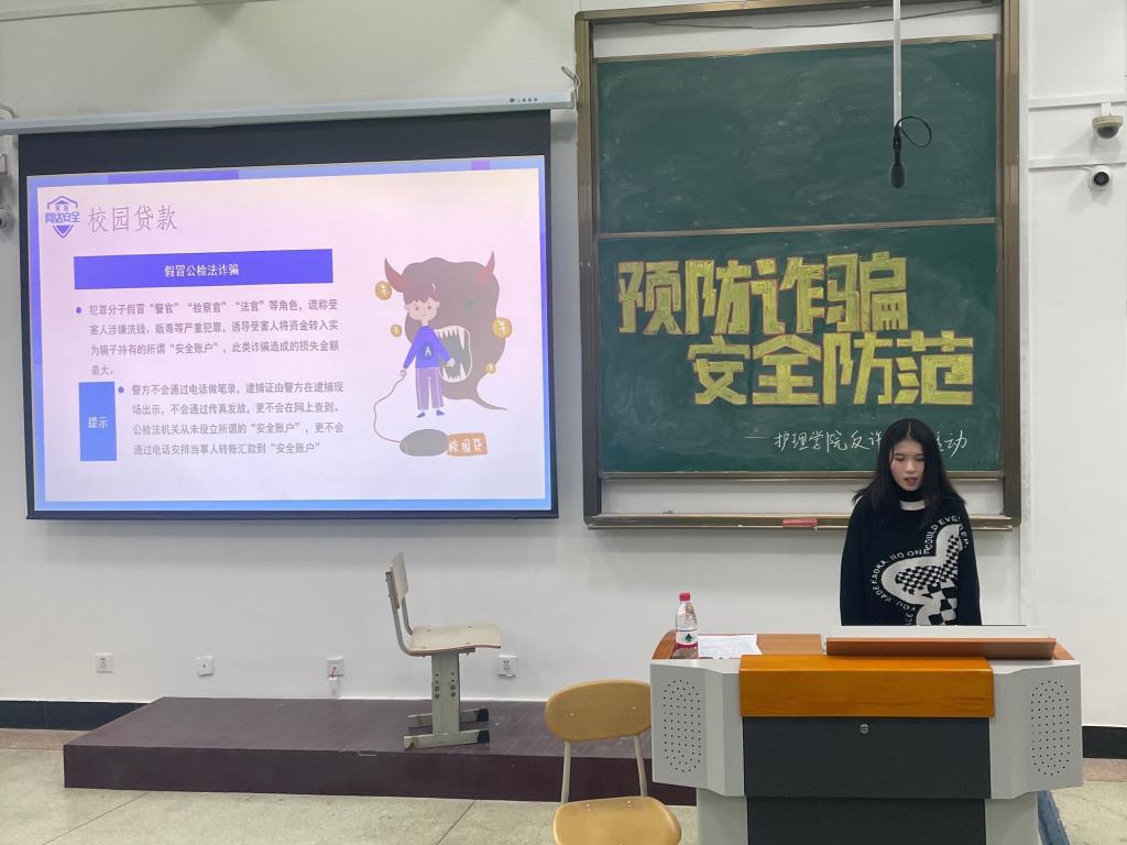 反诈骗志愿者团队于11月2日晚6:00在J202举办了防诈骗宣传活动,全体2021级护理学生参加了本次活动。