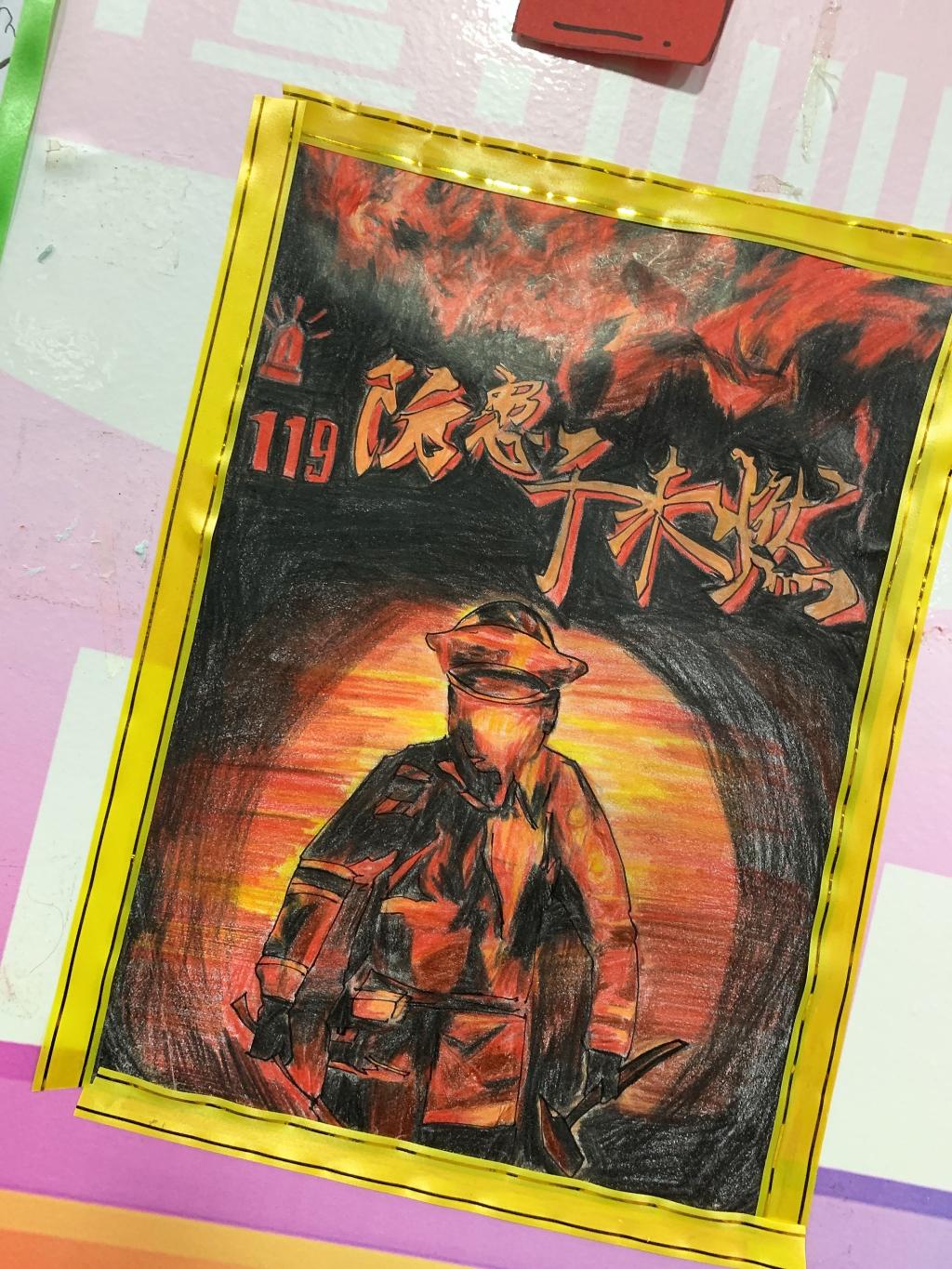 大学生对消防安全知识的深刻领悟。与此同时,不少画作上还写下了各种应对火灾的方法,为师生普及消防知识,让师生们面对火灾时能做到冷静思考、积极应对。